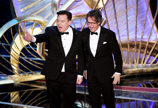 7:44 На сцене Майк Майерс и Дэна Карви, которые когда-то пели "Богемскую рапсодию" и фильме "Мир Уэйна". Логичным образом представляют фильм "Богемская рапсодия". Я уже, кстати, склоняюсь к мысли, что эта картина может и победить сегодня. Что-то много она берёт того, чего не должна была.