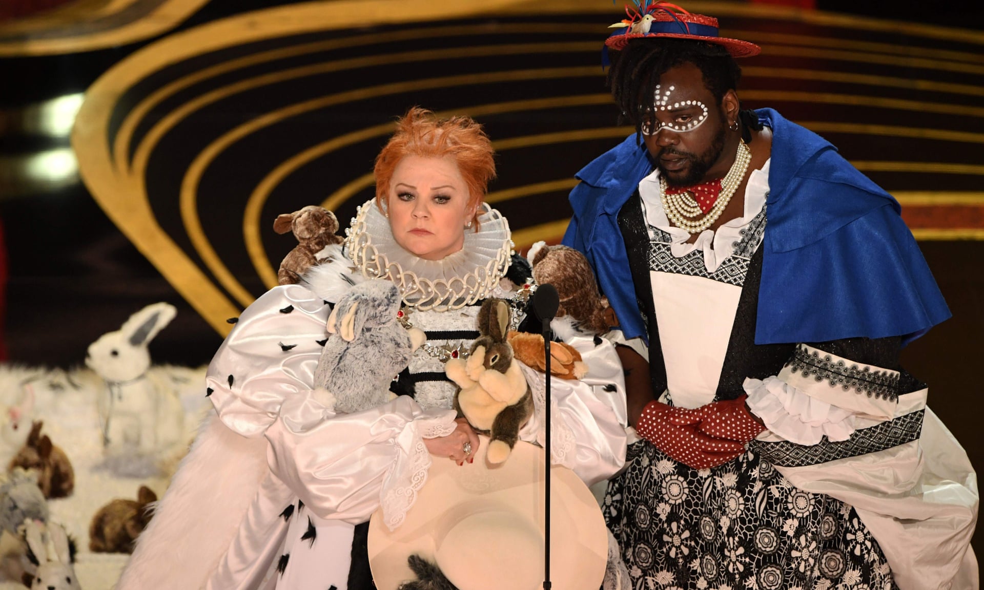 6:31 На сцене Брайан Тайри Генри и Мелисса МакКарти в умопомрачительном костюме королевы из "Фаворитки".